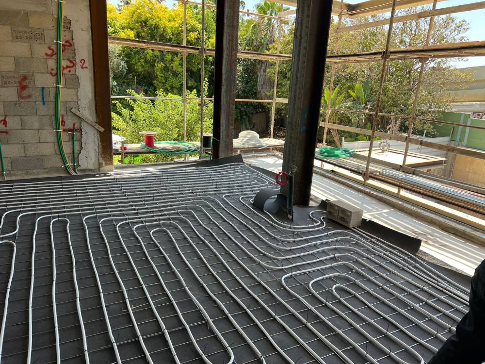 חימום רצפתי צנרת מים,פרויקט 220 מ״ר כפר שמריהו.
